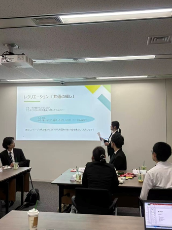 ケーキやドリンクを囲みながら、ゲームやグループレクリエーション、先輩社員とのフリートークを通して、笑顔と会話があふれる和やかな交流の時間となりました。趣味や考